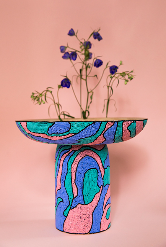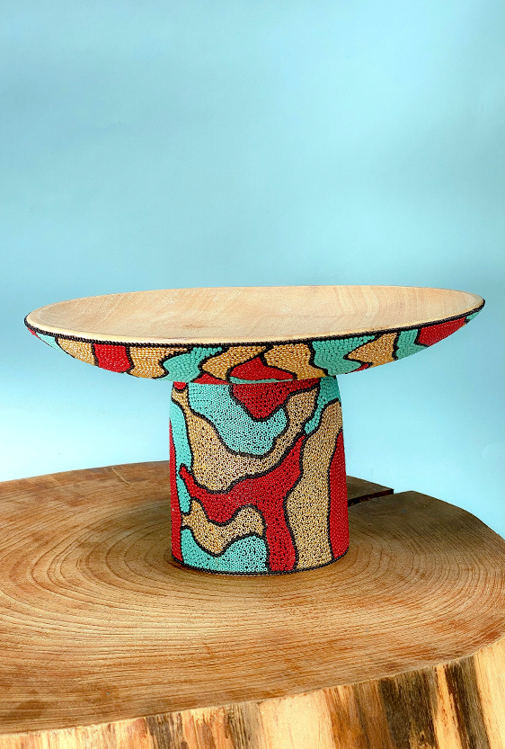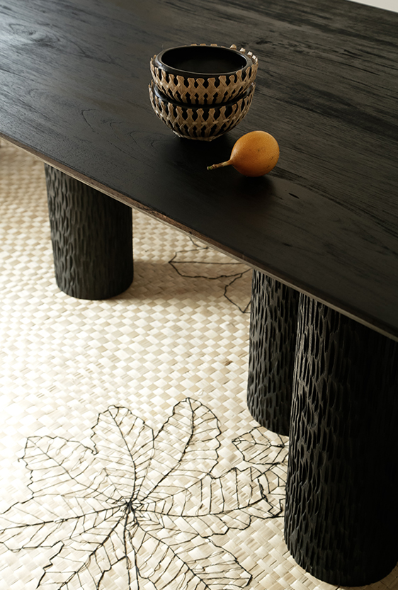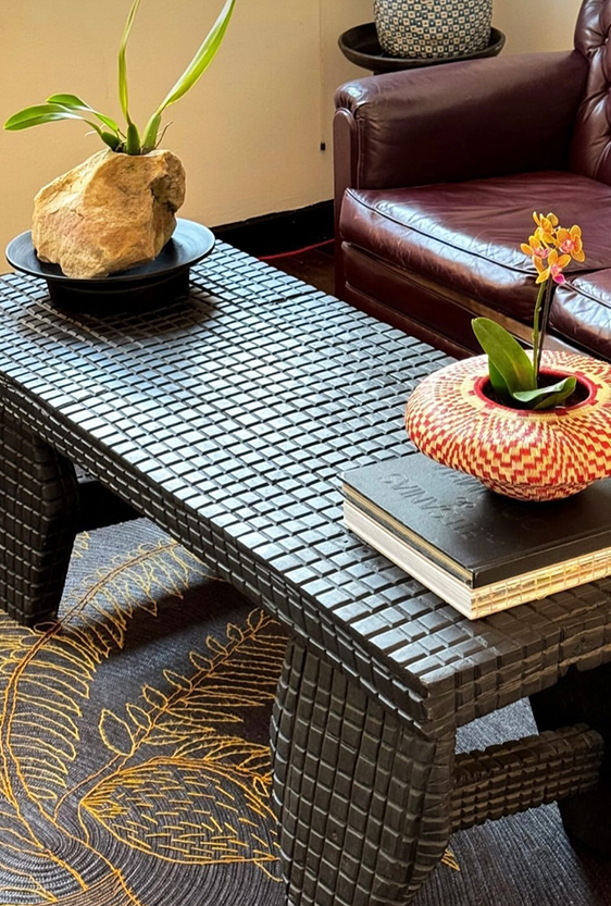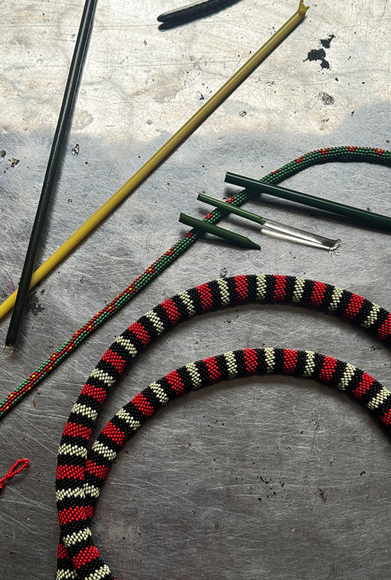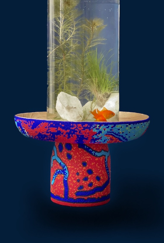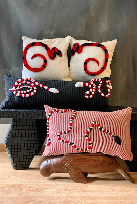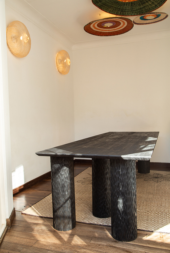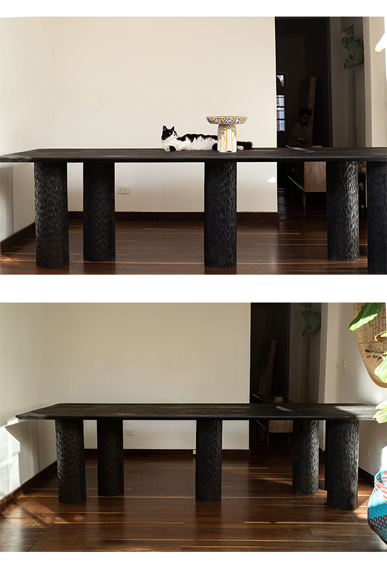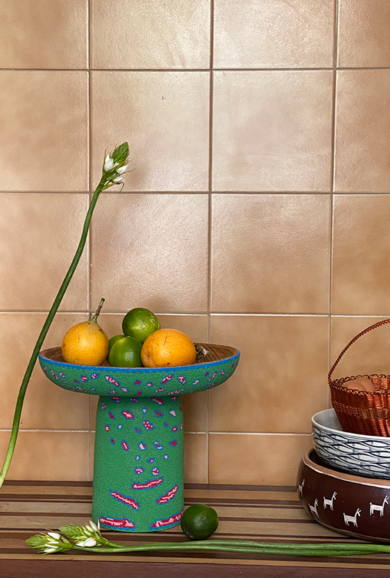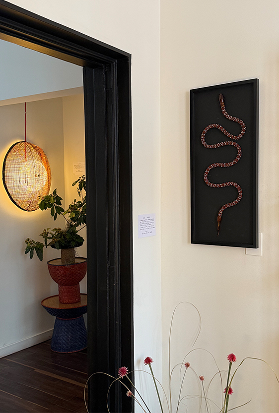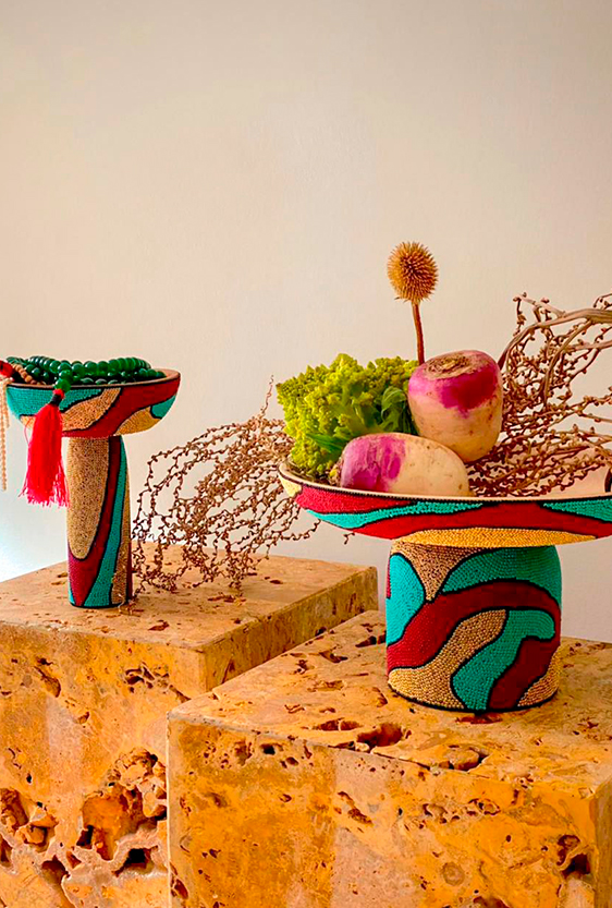 Each piece is unique, as are the animals that inspired them. The pieces are hand-carved from local woods harvested in the Meta department by Sikuani artisans; in Nariño by artisans skilled in the mopa mopa technique; and in Sibundoy, Putumayo, where Kamentza artisans decorate each piece with around 45,000 to 100,000 Czech beads. There are also snakes woven by Embera Chami women and furniture carved from blown glass in Bogotá.