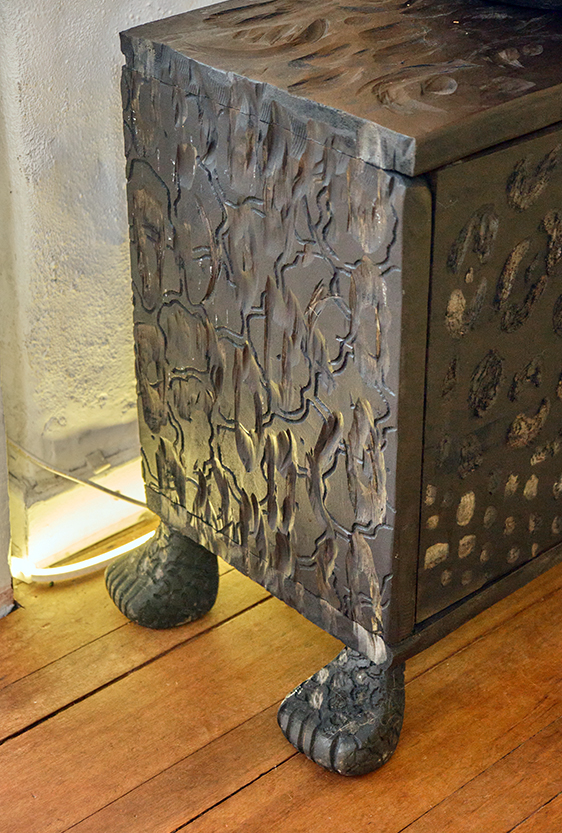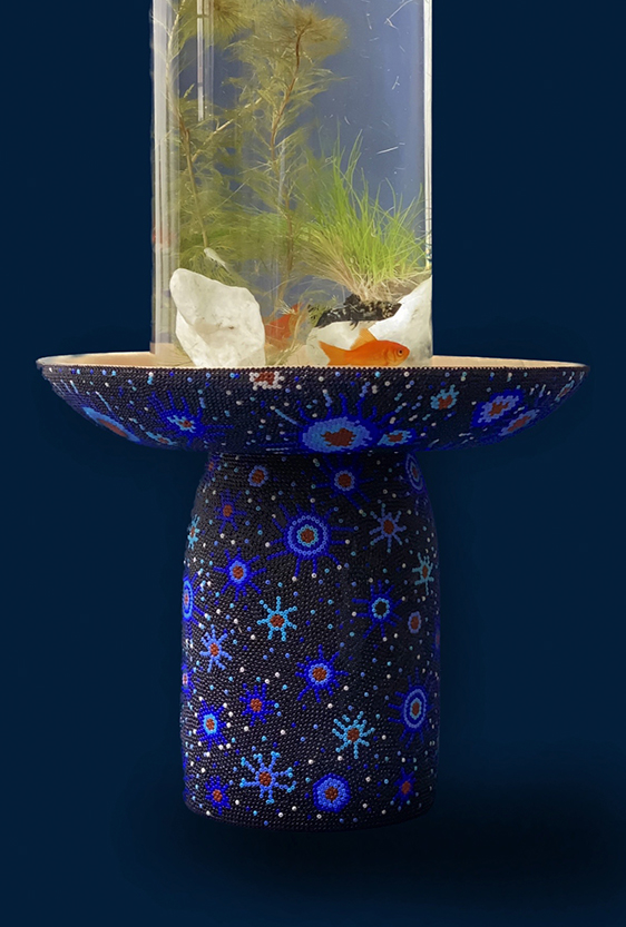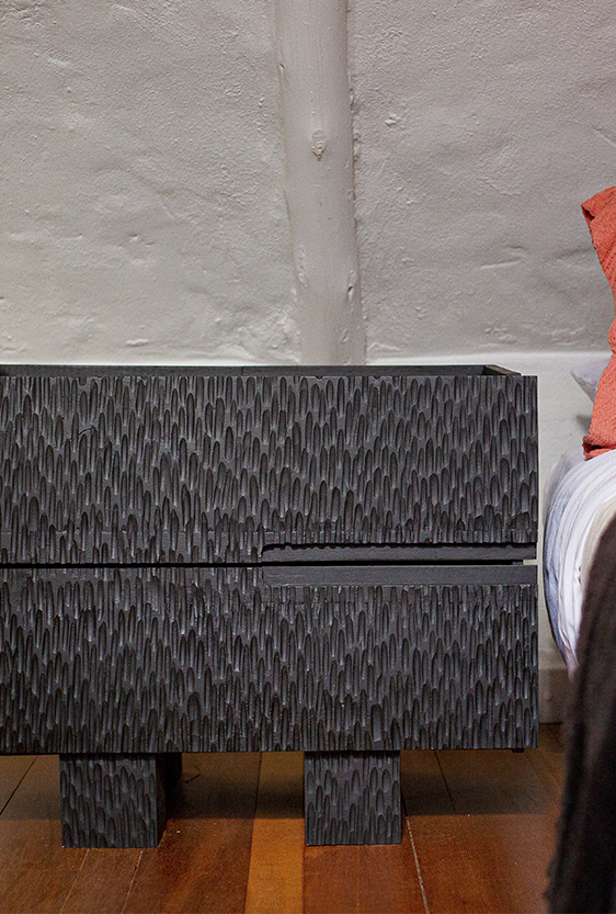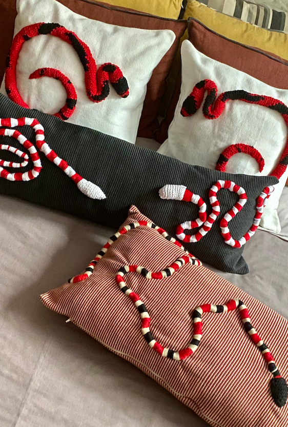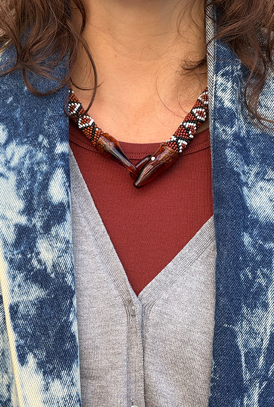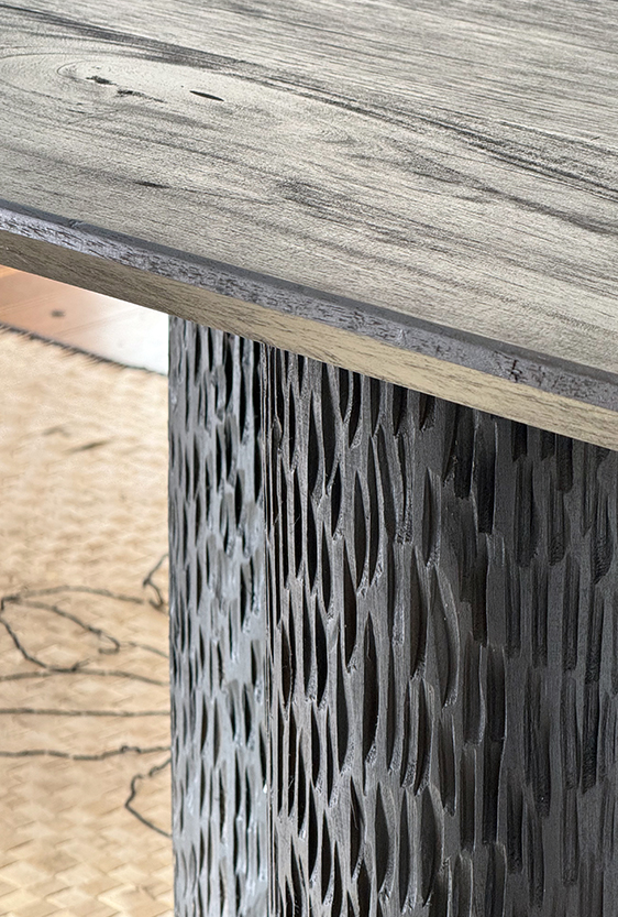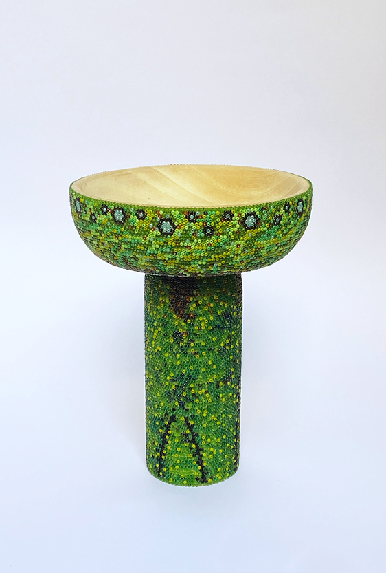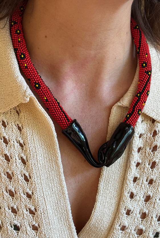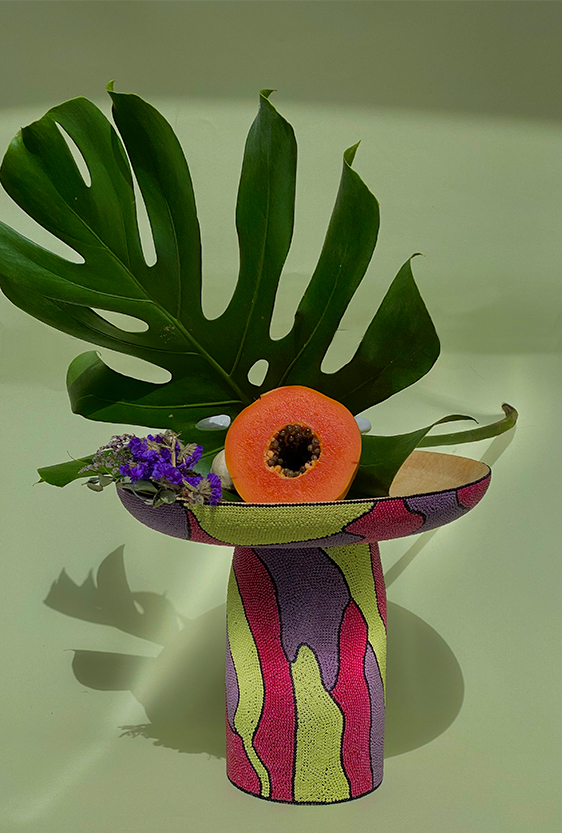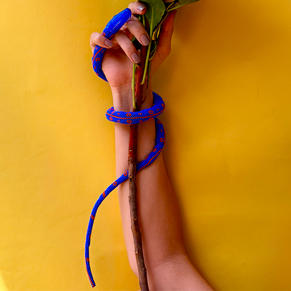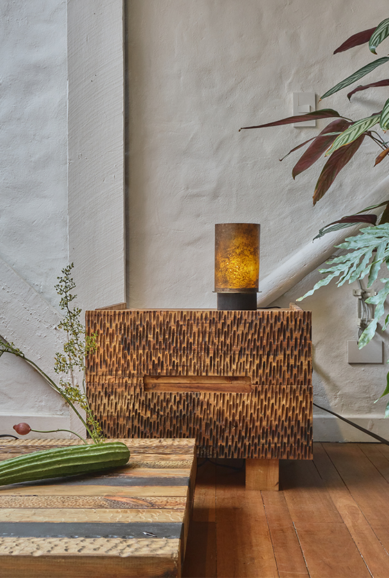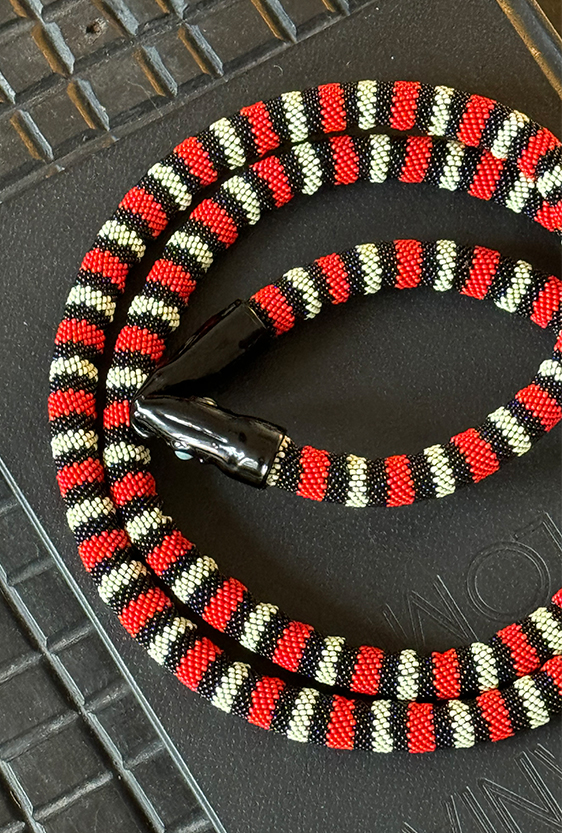 Each piece is unique, as are the animals that inspired them. The pieces are hand-carved from local woods harvested in the Meta department by Sikuani artisans; in Nariño by artisans skilled in the mopa mopa technique; and in Sibundoy, Putumayo, where Kamentza artisans decorate each piece with around 45,000 to 100,000 Czech beads. There are also snakes woven by Embera Chami women and furniture carved from blown glass in Bogotá.