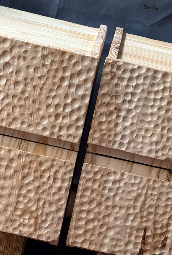 Cada pieza es única, al igual que los animales en los que se inspiran. Talladas a mano en maderas locales recolectadas en el departamento del Meta por artesanos Sikuani, en Nariño por artesanos expertos en la técnica del mopa mopa y en Sibundoy (Putumayo) donde se decora cada pieza con alrededor de 45 000 a 100 000 chaquiras checas por artesanos Kamentza, así como también serpientes hechas en tejido por mujeres Embera Chami y mobiliario tallado en Bogotá.