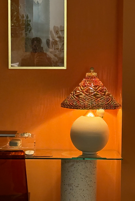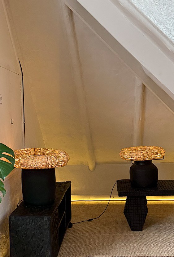Inspirado en un viaje a Cambodia en donde las raíces se entrelazan con la piedra, busco mezclar dos materiales tradicionales de la artesanía colombiana: la chamba (simulando la piedra) y la paja tetera (simulando las raíces), pretendo conectar el mundo natural con el mundo urbano, así como, conectar culturas, así como lo hacían los artesanos cuando hacían truque entre ellos para enriquecer su día a día. La mezcla de estos dos materiales demuestran que en la unión hay belleza y fuerza.